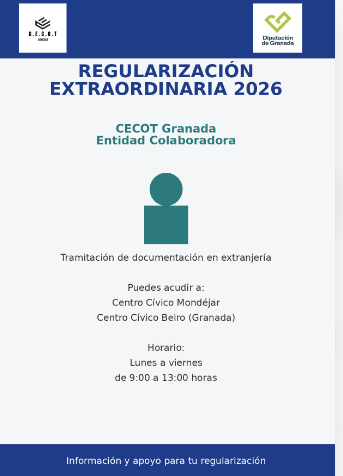 Escuela Abierta: Apoyo para la integración cultural y digital en la provincia de Granada. Apoyo y tramitación del permiso extraordinario de residencia y trabajo a personas inmigrantes